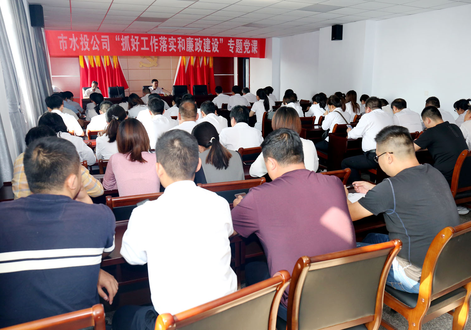 為深入推進(jìn)“不忘初心、牢記使命”主題教育活動開展,按照市委統(tǒng)一部署安排,經(jīng)公司黨委研究決定,于9月29日下午在公司六樓會議室,黨委書記崔作銘為公司全體黨員講了一堂題為“抓好工作落實(shí)和廉政建設(shè)”的專題黨課。公司各黨(總)支部全體黨員到場聽講。