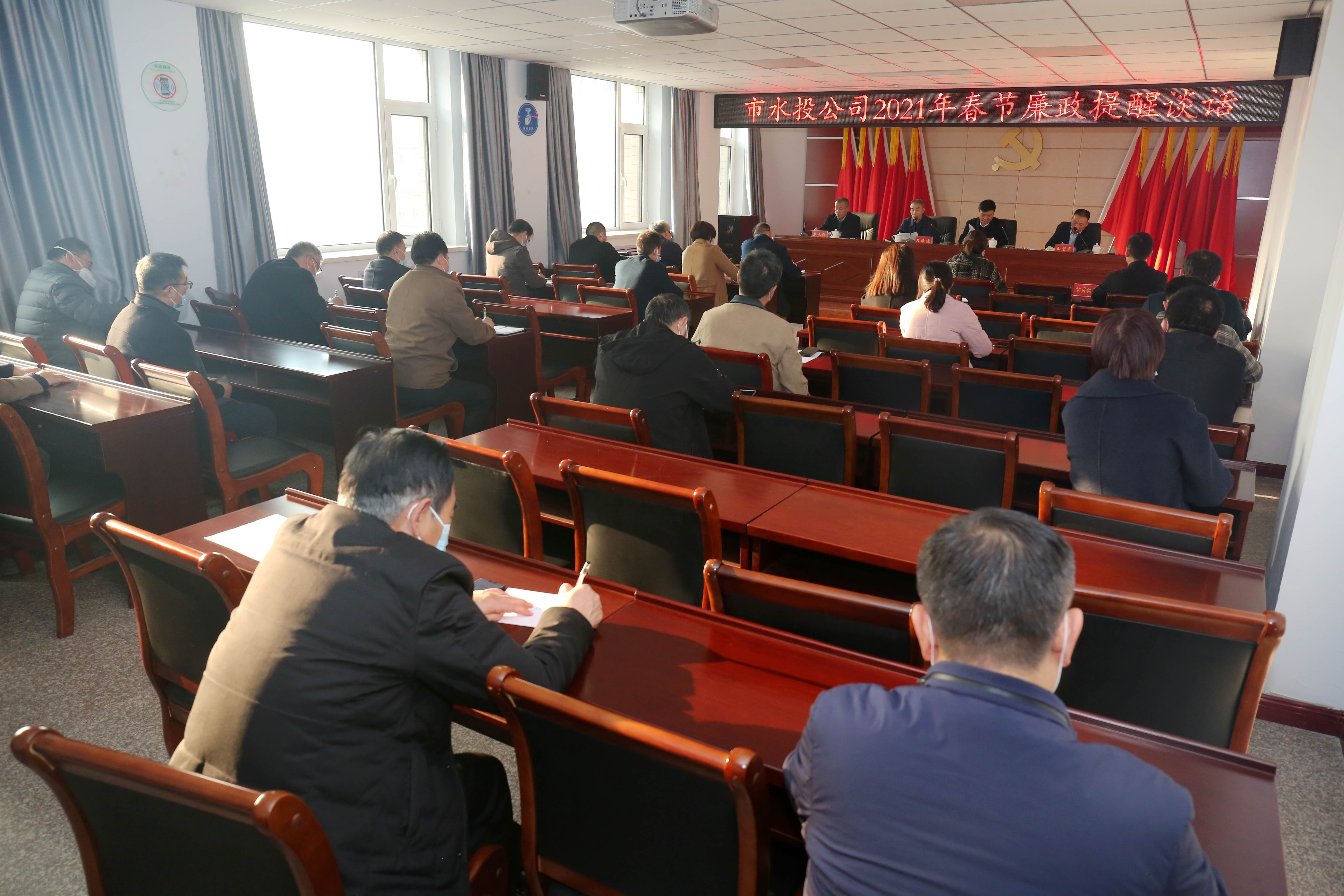 2021年新春佳節(jié)將至,為進一步落實全面從嚴治黨要求,持之以恒貫徹落實中央八項規(guī)定精神,嚴防“四風”問題在春節(jié)期間反彈,確保全體干部職工度過一個歡樂祥和、文明節(jié)儉、風清氣正的節(jié)日,2月9日下午,我公司召開2021年春節(jié)前廉政提醒談話會,持續(xù)敲響紀律警鐘。公司領導班子成員、機關中層干部、各下屬單位領導班子成員參加會議。