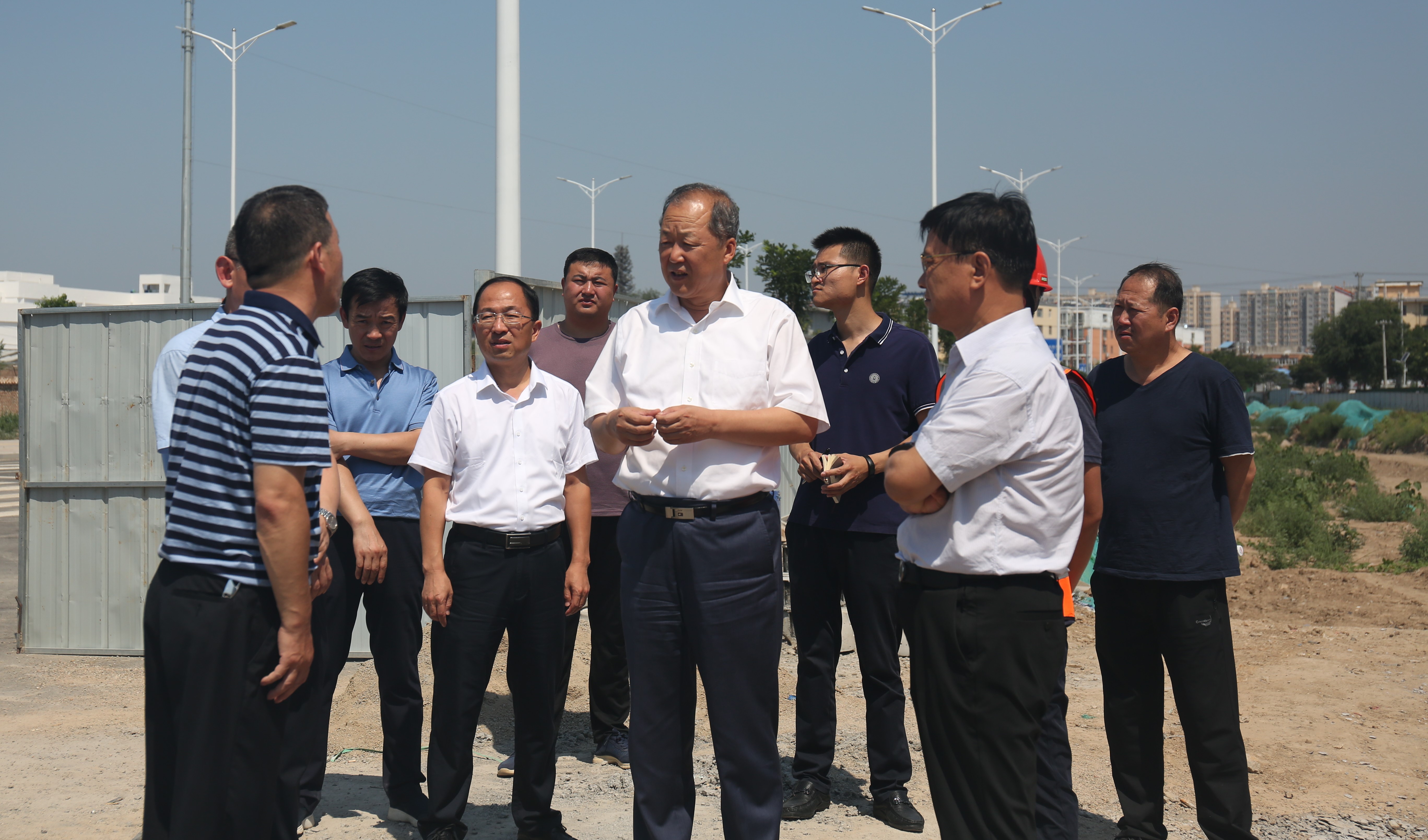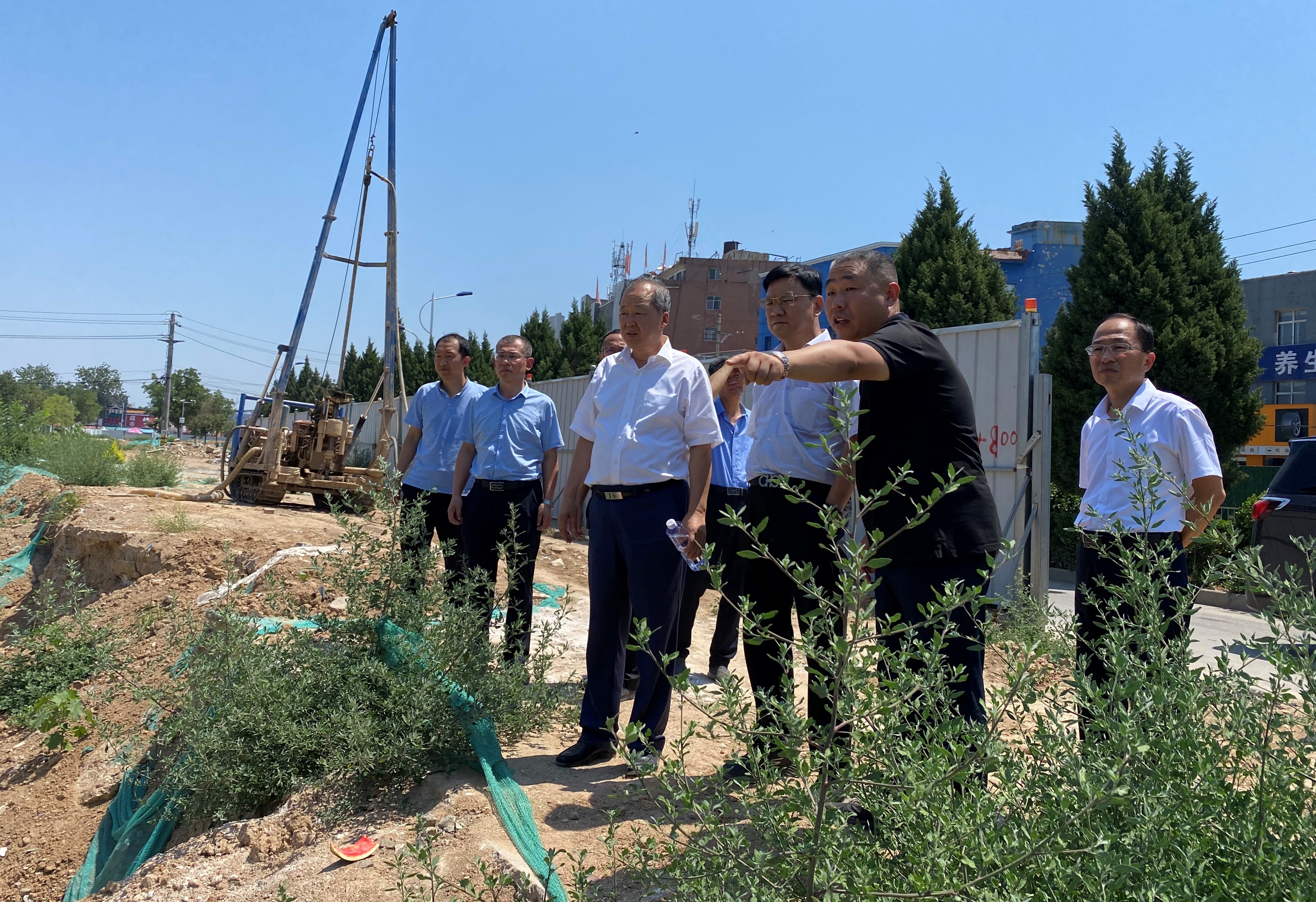 7月9日上午,市政府副市長董旭光到干河、姚暹渠項目工地調研。市政府副秘書長黃文健陪同調研。