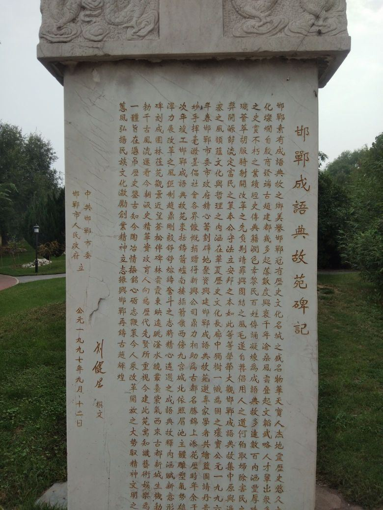 邯鄲成語典故苑位于河北省邯鄲市西北部趙苑公園內(nèi),建于1996年,是邯鄲市委、市政府為弘揚(yáng)邯鄲歷史文化而建的,具有豐富文化底蘊(yùn)和園林特色。據(jù)專家統(tǒng)計(jì),與邯鄲有關(guān)的成語典故共有1584條。2005年10月26日,邯鄲市被授予“中國成語典故之都”稱號。