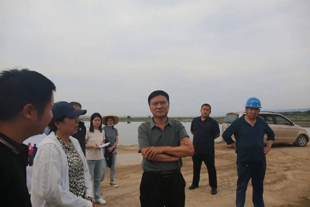沿著七彩環(huán)湖綠道一路向前,過(guò)小李村北后,是原鹽化七場(chǎng)運(yùn)硝路段,道路路基及兩邊基礎(chǔ)設(shè)施等工程已基本完工。驅(qū)車行駛至8號(hào)路南段,因雨后未修復(fù)的堤埝松軟,路面坑洼有積水難行,調(diào)研組一行人徒步3公里到南外江道疏浚施工現(xiàn)場(chǎng),邊走邊實(shí)地察看項(xiàng)目建設(shè)情況,結(jié)合堤埝江道原貌地形,崔作銘與現(xiàn)場(chǎng)技術(shù)人員反復(fù)論證施工實(shí)施方案,他指出首先要把綠道路基按標(biāo)準(zhǔn)要求夯實(shí)鋪牢,堤埝邊坡修復(fù)整齊,清理打撈污染垃圾,加快疏浚江道,保證鹽湖內(nèi)循環(huán)暢通無(wú)阻恢復(fù)湖泊生態(tài)系統(tǒng)自我修復(fù)功能;其次要科學(xué)精準(zhǔn)系統(tǒng)實(shí)施,為鹽湖的后續(xù)建設(shè)規(guī)劃和要素做好持續(xù)合理的需求保障。