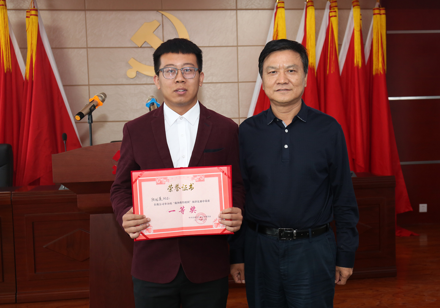 來自公司及各下屬單位的六名選手,圍繞“我和我的祖國”這一鮮明主題,用飽滿熱情的態(tài)度、富有激情的聲音,為大家呈現(xiàn)了一場精妙絕倫的視聽盛宴。選手們從愛崗敬業(yè)、增強自信、放飛夢想等方面謳歌贊美我們偉大的祖國,各有側(cè)重、立場獨到,妙語連珠、聲情并茂、繪聲繪色的演講風(fēng)格,不僅表明了水投人對工作的熱忱,更表達了對祖國母親的深情與感恩,現(xiàn)場的熱情被歡樂和榮耀一次次點燃。本次演講比賽采取評委現(xiàn)場打分、現(xiàn)場宣布結(jié)果的形式,按照演講內(nèi)容、演講技巧、演講效果等進行綜合評分。經(jīng)過激烈的角逐,最終評出一等獎一名,二等獎兩名,優(yōu)秀獎三名,公司領(lǐng)導(dǎo)班子成員向選手們頒發(fā)了獲獎證書。
