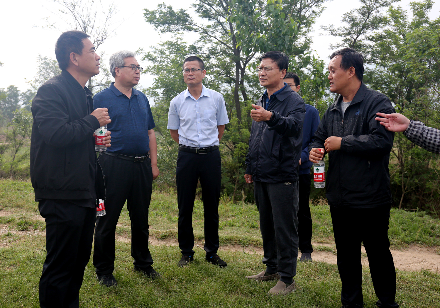 為加快推進鴨子池水生態(tài)綜合提升工程施工進度,5月20日上午,公司董事長崔作銘帶領公司相關人員,會同市水務局、設計單位、項目公司、項目部就環(huán)湖路工程、泵站排水壓力管線工程,步行從鴨子池泵站沿堤壩逐段實地查看,現(xiàn)場辦公,針對施工中所存在的問題,與設計單位、項目公司相關人員現(xiàn)場商議,交換思路,協(xié)商方案。