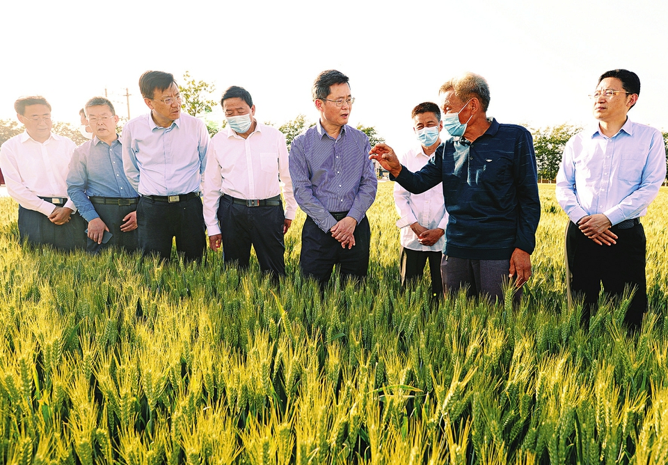 運城是農(nóng)業(yè)大市。夏縣水頭村優(yōu)質小麥正值灌漿關鍵期,豐收在望。藍佛安走進田間察看麥苗長勢,與農(nóng)民、農(nóng)技專家交流,了解麥種培育、災后補種等情況,強調(diào),要做好麥田中后期管理,全力奪取夏糧豐收,為保障國家糧食安全作出貢獻。在水頭村,藍佛安與干部群眾親切交談,詳細詢問農(nóng)民特別是脫貧人口就業(yè)及收入等情況,指出,基層黨組織要發(fā)揮戰(zhàn)斗堡壘作用,大力發(fā)展特色產(chǎn)業(yè),做好收入監(jiān)測、困難群眾幫扶,加強就業(yè)支持及兜底保障,促進農(nóng)民收入穩(wěn)定增長,持續(xù)鞏固拓展脫貧攻堅成果,全面推進鄉(xiāng)村振興。在維之王食品有限公司,藍佛安察看果品生產(chǎn)車間,對企業(yè)采取保護價收購農(nóng)產(chǎn)品的做法給予肯定,指出,農(nóng)民是現(xiàn)代農(nóng)業(yè)產(chǎn)業(yè)鏈的基礎環(huán)節(jié),要完善利益聯(lián)結機制,吸引更多農(nóng)戶投入現(xiàn)代農(nóng)業(yè)發(fā)展,實現(xiàn)企農(nóng)雙贏。在格瑞特酒莊有限公司,藍佛安察看橡木桶貯存工藝,了解葡萄酒研發(fā)、市場銷售等情況,勉勵企業(yè)拓展市場、做響品牌,不斷增強龍頭帶動作用。