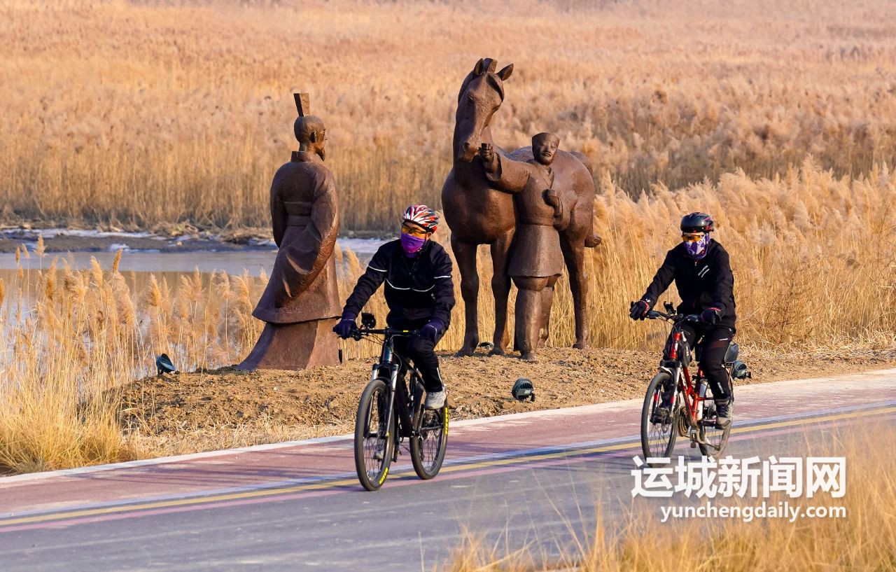 剛?cè)雸@就看到極具河?xùn)|特色的風(fēng)物,一冊(cè)竹簡(jiǎn)矗立在入口處,“雷澤巨跡”“鯉躍龍門”幾個(gè)字入了心。再往深處,亦見豐盈清雅的山水風(fēng)光。金色的蘆葦叢,波光粼粼的鴨子池,遠(yuǎn)處城市煙火氣的剪影,近處清麗婉轉(zhuǎn)的鳥鳴聲……
